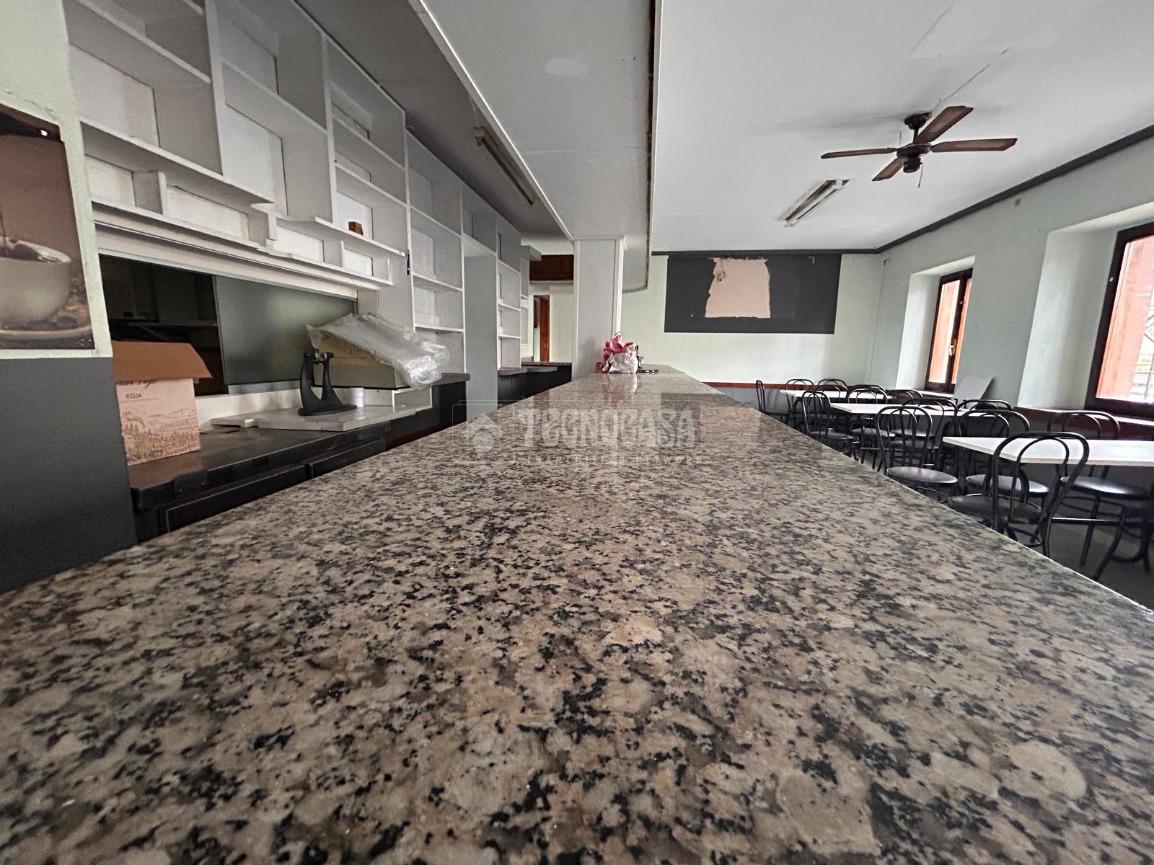Actualmente está distribuido en zona de barra, dos comedores independientes, cocina equipada con salida de humos y baños, además de contar con un patio trasero ideal como almacén.